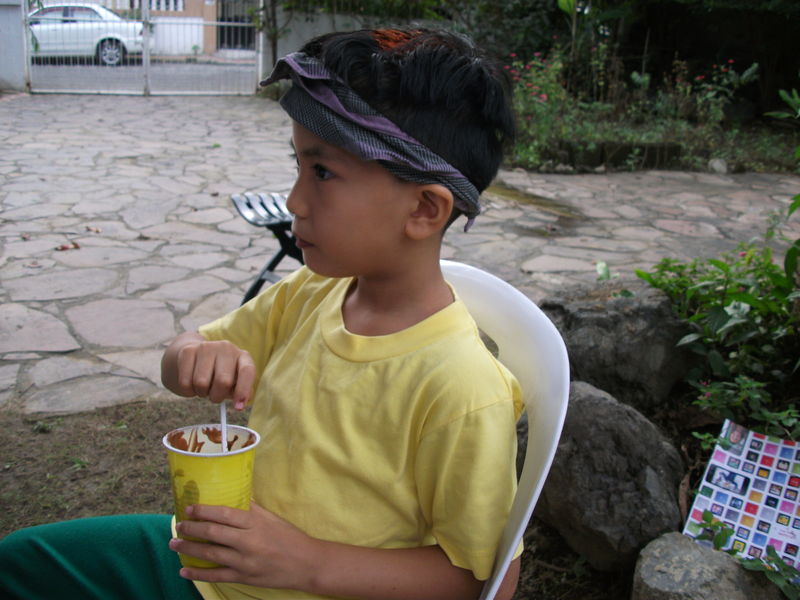 Our 7 year old boy Mish figured in an accident this aftenoon. We were having a grand family reunion party and there were a lot of children and a lot of running. My wife and I were enjoying the festivities when my sister in law called out to us that Mish was crying and bleeding profusely from the top of his head, figured in some kind of accident no one really saw.